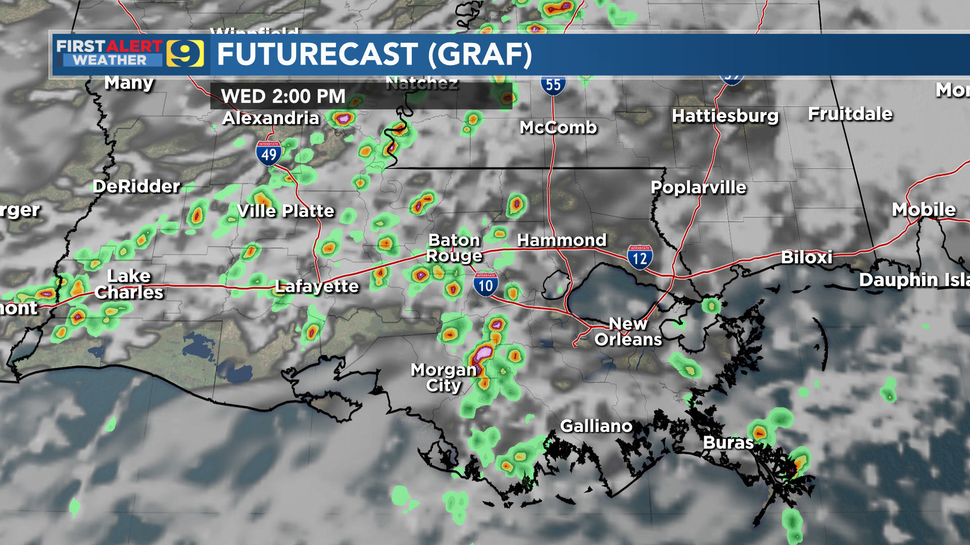Showers and thunderstorms are expected across the area on Tuesday especially for areas in eastern Mississippi.